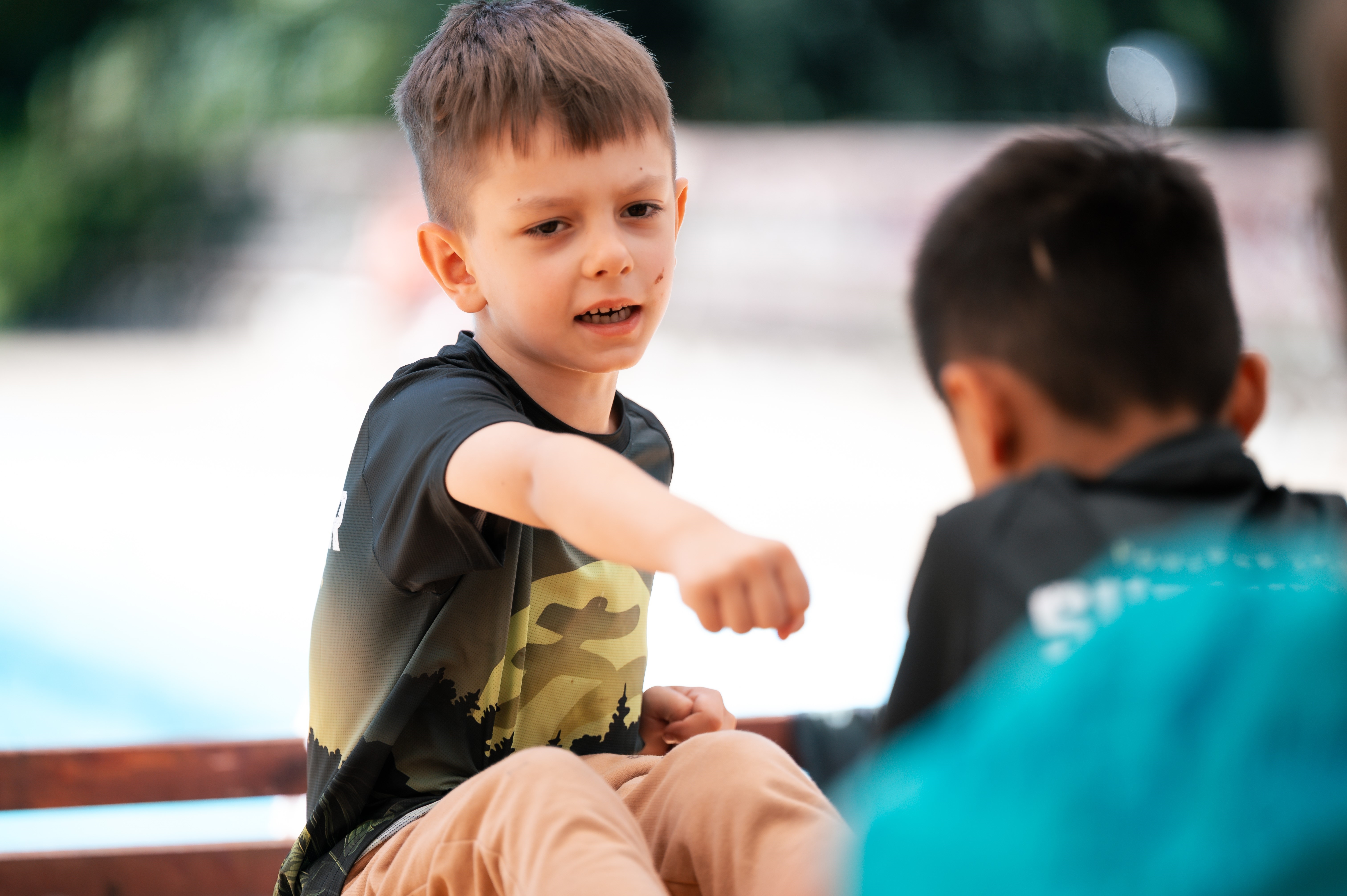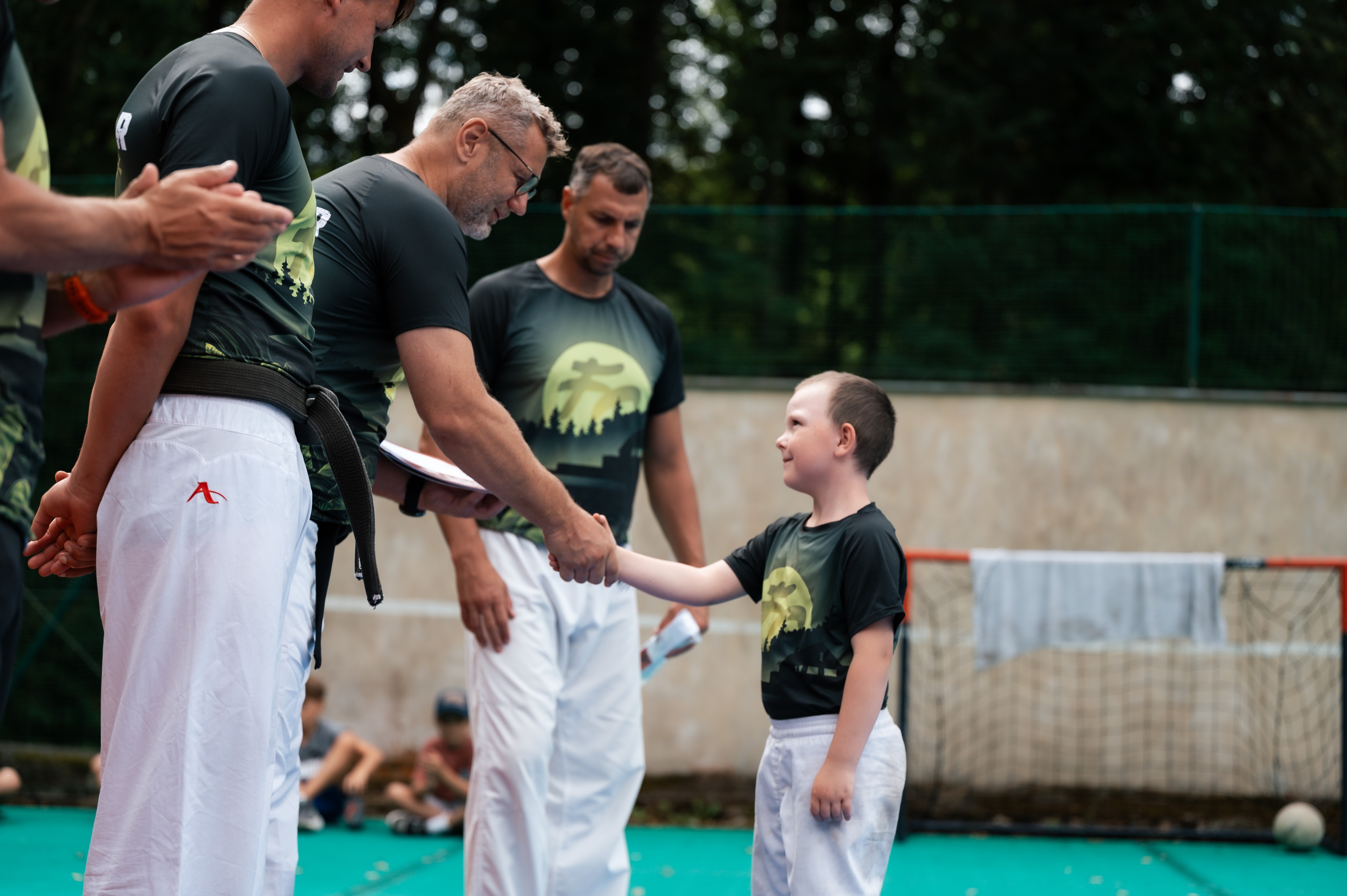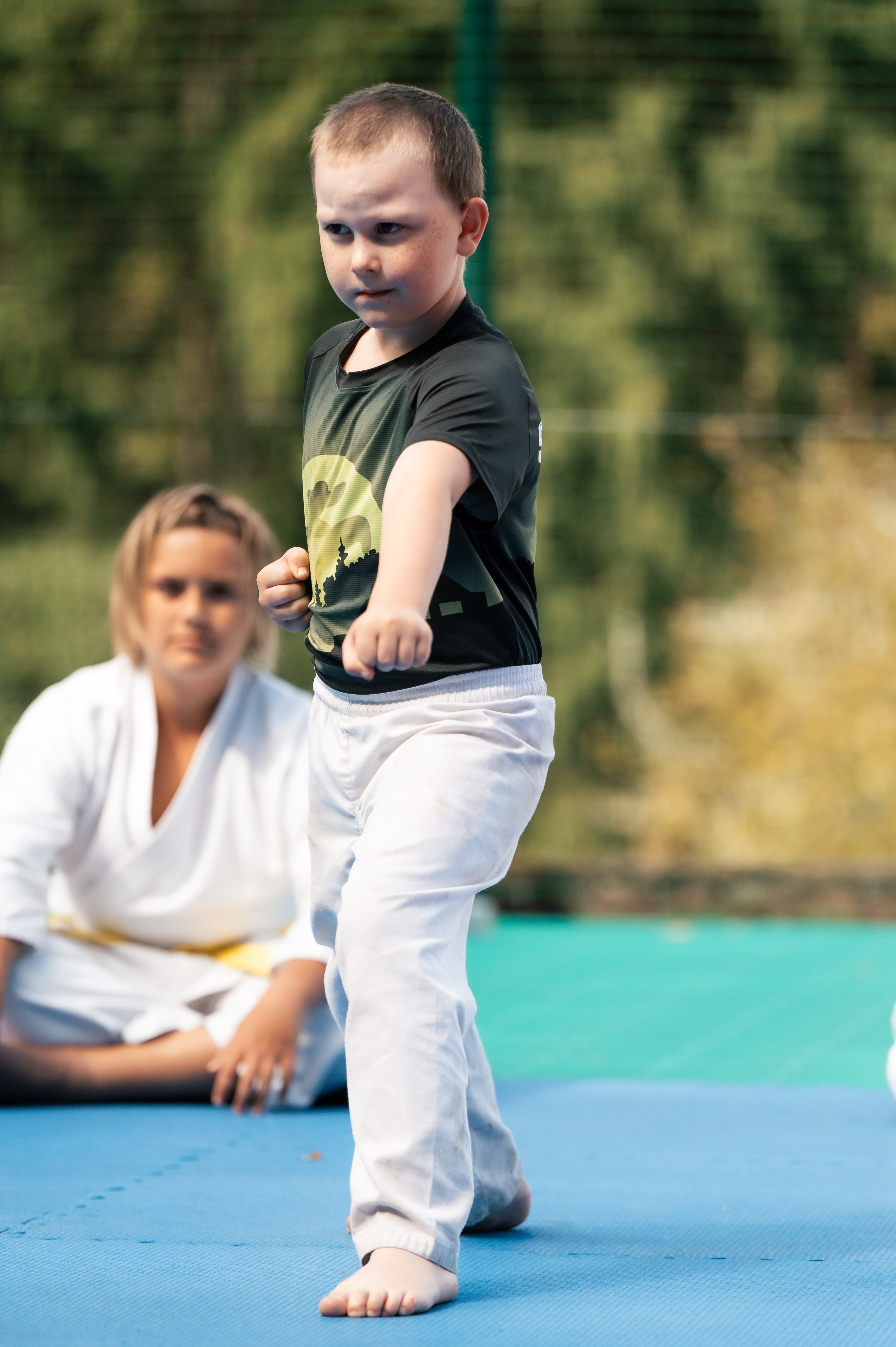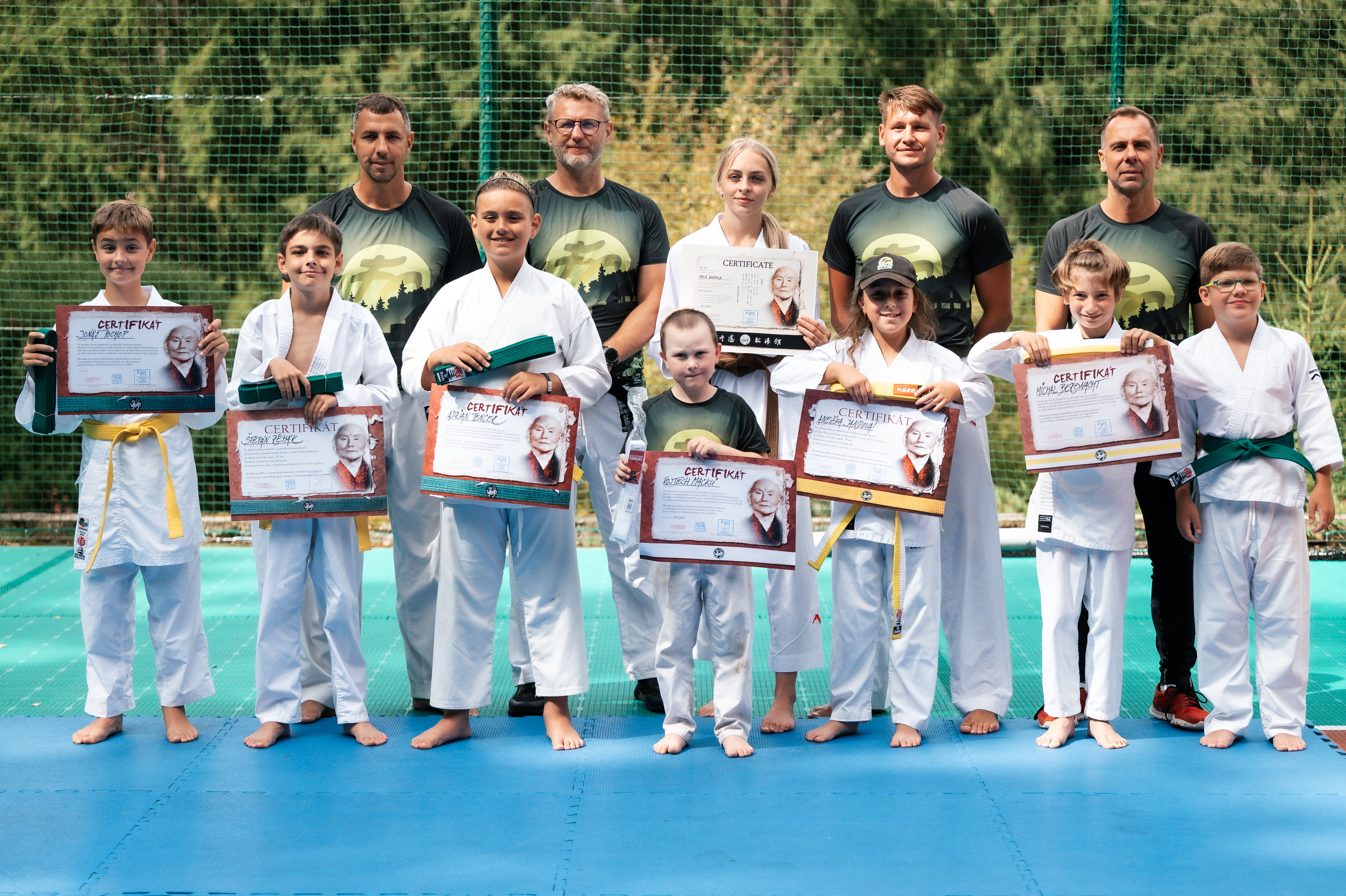Hned v úvodu se rozdělovaly týmy, vyráběly vlajky a bojovalo se o jméno. Na programu nechyběly náročné karate tréninky, kondiční příprava, ale i hry v přírodě, bazén a první Survivor challenge. Všechno mělo svůj smysl – učili jsme se reakce, odvahu, spolupráci i to, že pravidla platí nejen v soutěži, ale i v životě.